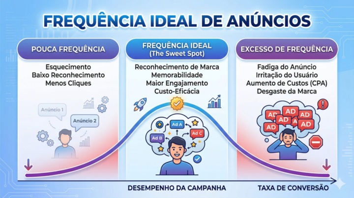 Mesmo com frequência alta, anúncios diferentes reduzem a percepção de repetição. Isso é essencial para manter o interesse do usuário e prolongar a vida útil da campanha.